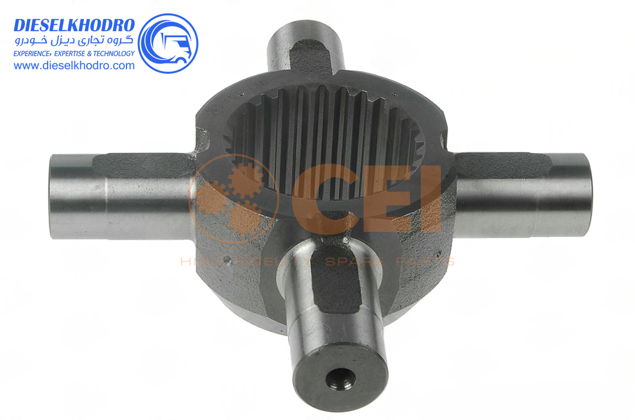 توضیحات فنی: این چهار شاخه (اسپایدر) جدید از فولاد آلیاژی 42CrMo4 با سختی 50-55 HRC ساخته شده و برای انتقال گشتاور در سیستم جفت کن جدید دیفرانسیل 8 سیلندر طراحی شده است. با فرآیند فورجینگ و ماشینکاری CNC تولید شده و دارای تلرانس ابعادی ±0.015 میلیمتر است. این قطعه قادر به تحمل گشتاور تا 3500 نیوتنمتر بوده و با پوشش ضدخوردگی (مانند فسفاته) محافظت میشود. طراحی آن برای همترازی دقیق و کاهش ارتعاشات بهینه شده و با استانداردهای OEM ZF سازگار است.