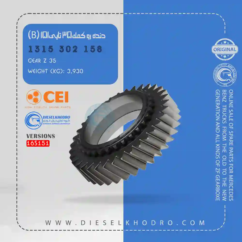 توضیحات فنی: این دنده رو کمک با 35 دندانه از فولاد آلیاژی 18CrNiMo7-6 با سختی 58-62 HRC ساخته شده و برای سیستم رو کمک گیربکسهای 151 طراحی شده است. قطر خارجی 135 میلیمتر و با فرآیند دندهزنی دقیق تولید شده است. تحمل گشتاور تا 2800 نیوتنمتر داشته و با استانداردهای OEM سازگار است.