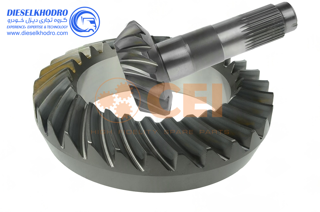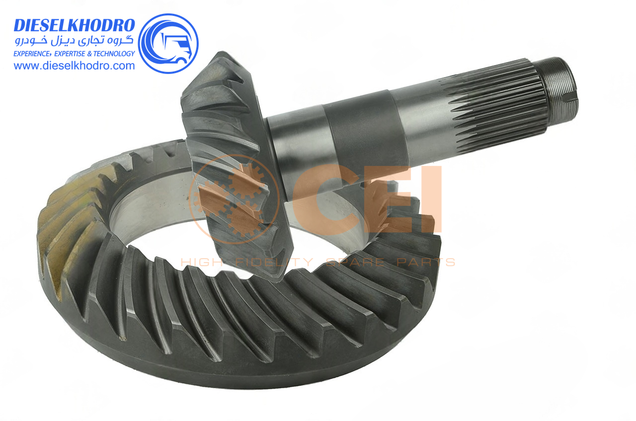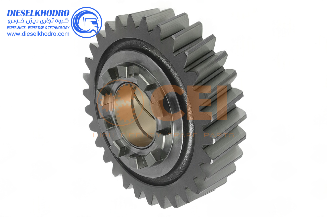 این دنده دوقلو با نسبت 30/30 و بوش داخلی از فولاد آلیاژی 18CrNiMo7-6 با سختی 58-62 HRC ساخته شده و برای سیستم جفت کن جدید دیفرانسیل مایلر طراحی شده است. بوش داخلی (معمولاً برنز فسفر) برای کاهش اصطکاک و افزایش عمر مفید تعبیه شده است. با فرآیند دندهزنی دقیق و حرارتدهی القایی تولید شده و دارای تلرانس ابعادی ±0.015 میلیمتر است. این دنده قادر به تحمل گشتاور تا 3500 نیوتنمتر بوده و با پوشش ضدخوردگی (مانند نیکلکروم) محافظت میشود. با استانداردهای OEM ZF سازگار است.