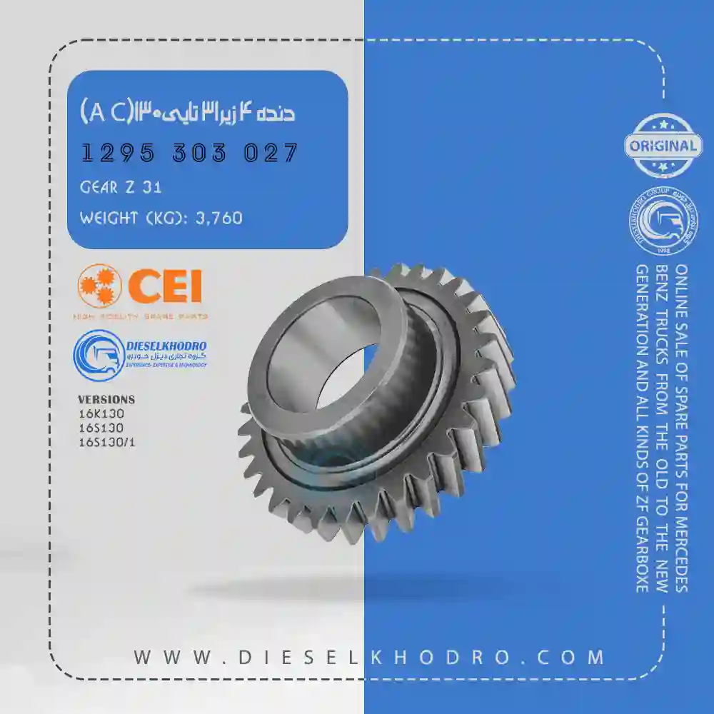 توضیحات فنی: این دنده چهارم زیر با 31 دندانه برای گیربکسهای 130 طراحی شده است. از فولاد سختکاریشده ساخته شده و انتقال گشتاور کارآمد را تضمین میکند. این دنده در برابر سایش و تنشهای مکانیکی مقاوم بوده و با استانداردهای OEM سازگار است. برای تعمیرات گیربکس مناسب است. نصب دقیق با ابزارهای استاندارد برای عملکرد بهینه ضروری است.