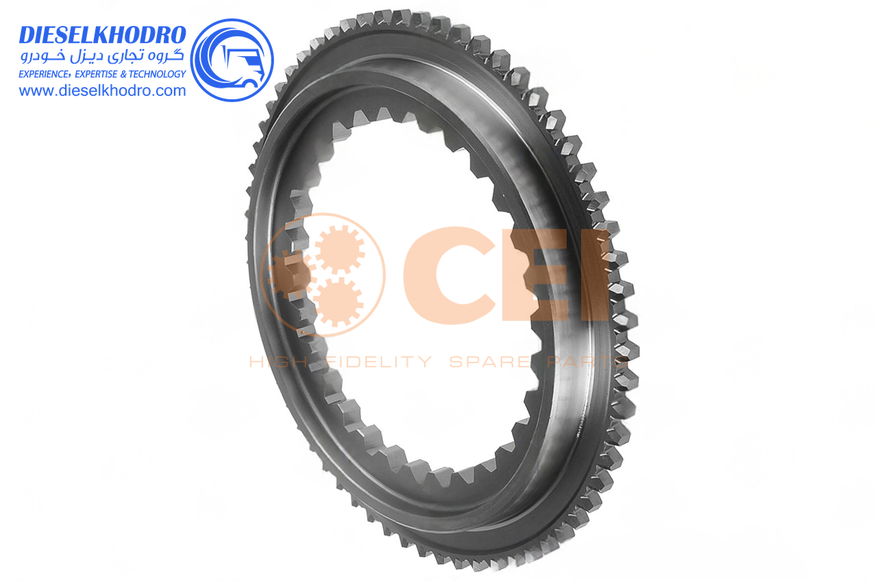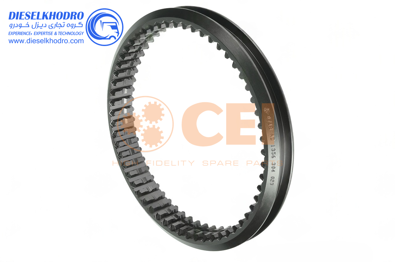 توضیحات فنی: این کشویی از فولاد آلیاژی 18CrNiMo7-6 با سختی 60 HRC ساخته شده و برای تعویض دندههای سوم و چهارم گیربکسهای 221 طراحی شده است. دارای 6 شیار داخلی با زاویه 60 درجه برای قفل شدن با ثابت و 3 شیار خارجی برای برنجیها است. قطر داخلی 90 میلیمتر، قطر خارجی 130 میلیمتر و طول 52 میلیمتر بوده و تحمل گشتاور تا 2800 نیوتنمتر دارد. سطح داخلی با فرآیند سنگزنی دقیق (Ra 0.4 میکرومتر) تولید شده تا اصطکاک کاهش یابد. این قطعه با استانداردهای OEM سازگار بوده و با رابطهای 190 یا 025 هماهنگ است.