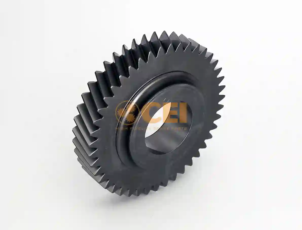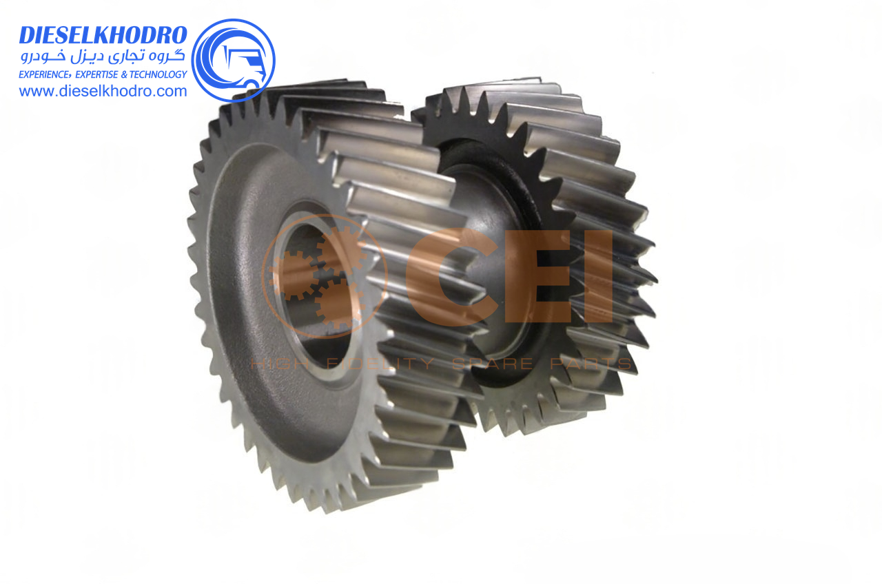 توضیحات کلی: این دنده 41 دندانهای روی شافت کندرو (Countershaft) نصب میشود و نقش اصلی را در تعیین کمترین ضریب دنده (دنده 1 یا دنده کرال) ایفا میکند. از آنجایی که این دنده همیشه درگیر با دنده روی شافت اصلی است، کیفیت سطح و سختی دو سطح تماس (دندههای روی کندرو و دندههای متناظر روی شافت اصلی) باید در بالاترین حد باشد تا از پدیده خستگی سطحی (Pitting) جلوگیری شود.